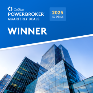 Kevin Prunty, Vice President of Real Estate was recently awarded CoStar’s Q2 2025 Power Broker Quarterly Deals Award for leasing 51,020 square feet of office space to Conduent State & Local Solutions